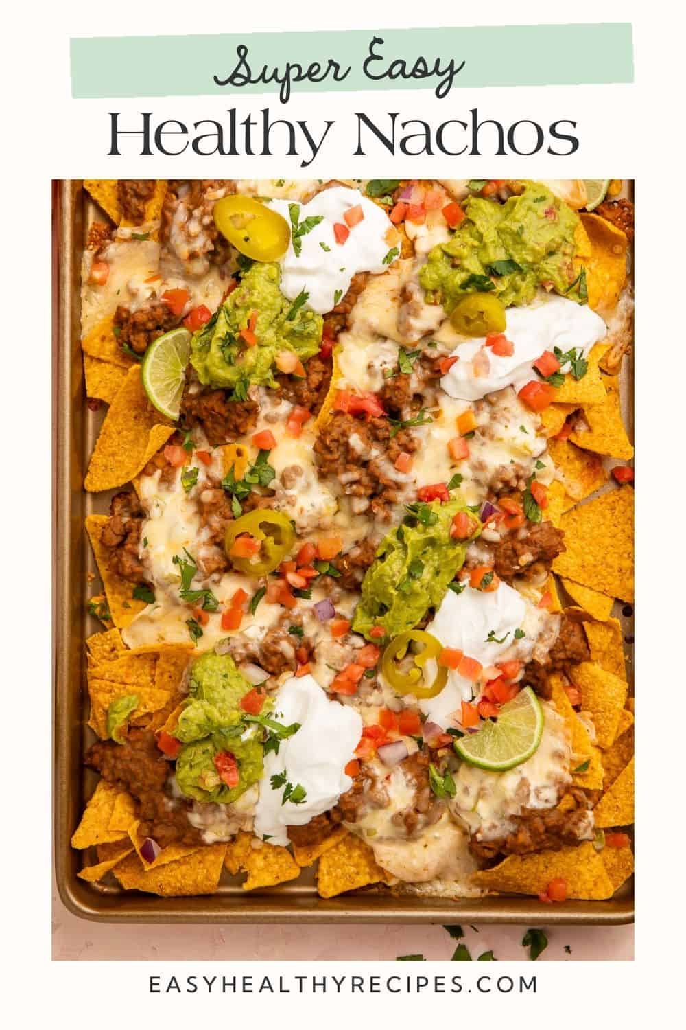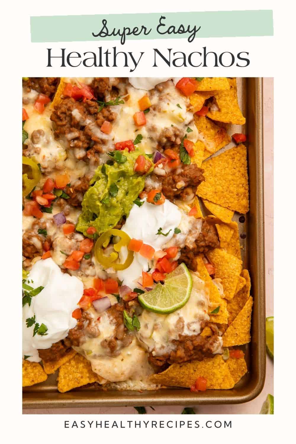 - This Healthy Nacho recipe has everything you want from a tray of baked nachos: melty cheese, savory beef, creamy, gooey queso, and plenty of tasty toppings. But with a few lighter swaps like our cottage cheese queso and refried bean beef, they’re healthier for you than regular Game Day nachos!
