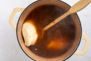 Once boiling, add in the chicken breast, reduce to a simmer, and cook covered for 10-12 minutes or until chicken is cooked through.